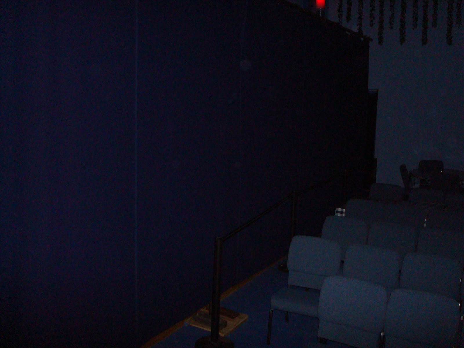 Our experiences: My friend Lynda thought she saw a small shadow on the stage - this would make sense as the little girl Mary tends to be seen on stage and they keep a small red ball up there for her to play with. Also, when we were standing on the stage looking up at the projection room the windows would black out - as if someone was walking up there. When we first walked into the theater I feel that "hair on end feeling" for awhile and then it eventually went away. They had a KII meter (which is suppose to light up when ghosts are around - they use them on Ghost Hunters all the time) - it lit up quite a bit. There was a flashlight sitting on the table that Mary likes to play with. They kept asking her to turn it off and finally right before we were going to leave it dimmed, then went really bright and then finally off. Lucas thinks the battery went out or the lady hit the table. Sigh. :)